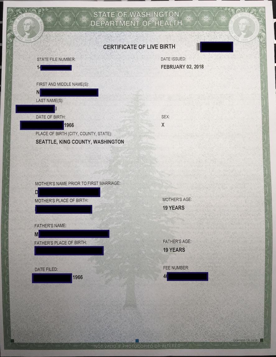 申请一份用于认证的有letter of exemplification的西雅图出生纸(Seattle Birth Certificate)。
